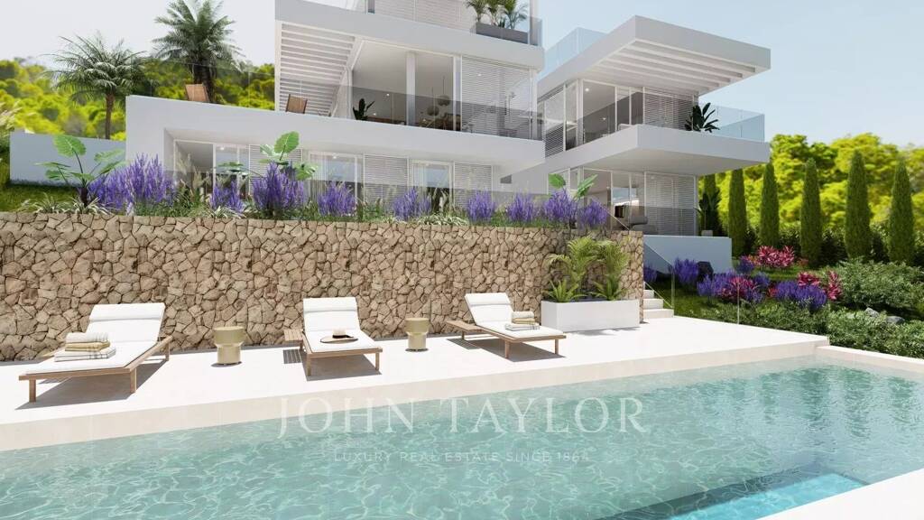 Mit großer Sorgfalt wurden Studien durchgeführt, um sicherzustellen, dass die Sichtachse dieses Grundstücks auf die Bucht von Camp de Mar gerichtet ist. Es wurden auch Höhenstudien für die Terrassen der Wohnräume durchgeführt, um den Blick auf die Bucht und die Privatsphäre für jeden Wohnraum zu gewährleisten. Die Krümmung der Auffahrt, die die Zufahrt darstellt, sorgte dafür, dass ein Grundstück nicht die Sicht auf ein anderes versperrte.