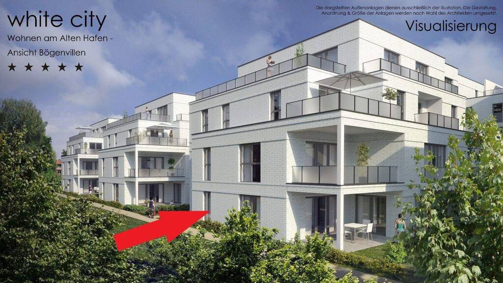 "White City" Bögenvilla EG Whg mit seperatem Eingang 3,5 Zimmer, 111 m² Wfl.,Terrasse mit Privatgarten, hochwertige EBK, 2 Stellplätze