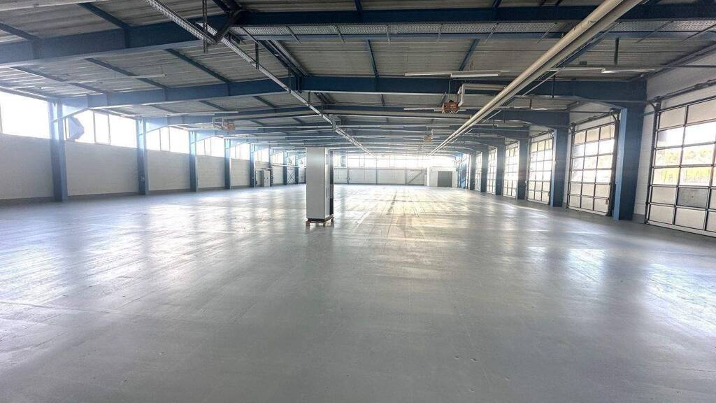 •Halle im EG ca. 1.660 m² Nutzfläche •seitlicher Bürotrakt EG und OG ca. 176 m² •Außenmaße der Halle 65 m x 27,70 m •Deckenhöhe innen bis zum Dach: 5,10 m •Deckenhöhe Träger Unterkante: 4,20 m •Deckenheizung •Betonfußboden •6 große Rolltore an der Längsseite 3 m x 4 m •2 große Rolltore an der Giebelseite zur Grundstückseinfahrt 4 m x 4,20 •Baujahr 1993/94 •Ursprünglich gebaut für Hermes Versand