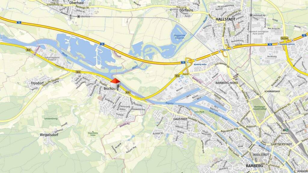 Die Anbindung an den regionalen Verkehr ist hervorragend: Die Bundesstraße B26 liegt nur wenige Minuten entfernt und ermöglicht eine schnelle Verbindung nach Bamberg und in das Umland. Die Autobahnen A70 und A73 sind ebenfalls in kurzer Fahrzeit erreichbar und bieten direkte Routen nach Nürnberg, Würzburg oder Schweinfurt. Öffentliche Verkehrsmittel sind in der Nähe vorhanden.