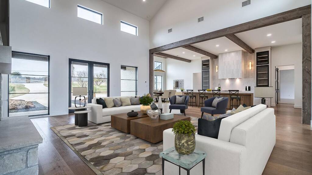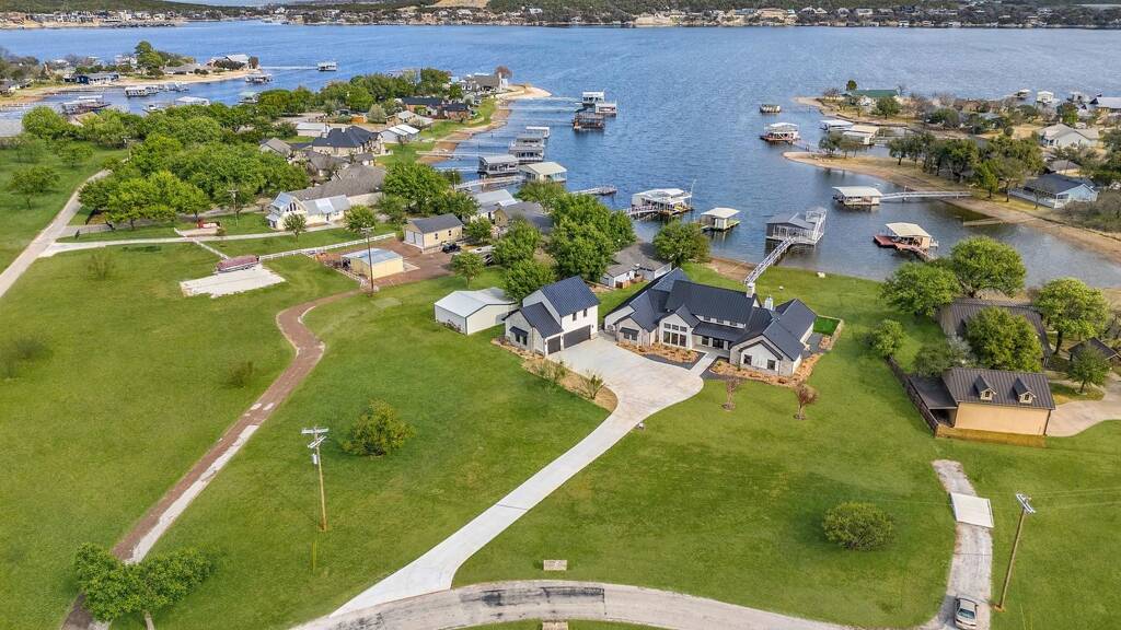 Ein außergewöhnliches Anwesen am See wartet innerhalb der exklusiven Tore von Gaines Bend am Possum Kingdom Lake, wo raffinierter texanischer Luxus auf die dramatische Schönheit des Canyonlandes trifft. Dieses maßgeschneiderte Bret-Jordan-Meisterwerk bietet kompromisslose Raffinesse auf über fünftausend Quadratfuß und bietet einen durchdachten Grundriss mit einer ruhigen Hauptsuite, vier wunderschön eingerichteten Gästezimmern und einer separaten Schwiegermuttersuite. Ein atemberaubendes Schlafzimmer krönt die freistehende Drei-Auto-Garage mit einer privaten Kaffeebar. Die Gourmetküche präsentiert hochwertige Geräte und maßgefertigte Schränke, die nahtlos in einen Spielraum und eine voll ausgestattete Bar übergehen. Draußen entfaltet sich eine Oase auf Resort-Niveau mit funkelndem Pool, Feuerstelle und mehreren überdachten Terrassen. Ein privater zweistöckiger Steg in einer ruhigen Bucht bietet sofortigen Zugang zu erstklassigem Bootfahren und Wassersport, während Panoramablicke auf den See eine unvergleichliche Kulisse für den ultimativen Lebensstil des Possum-Königreichs schaffen.