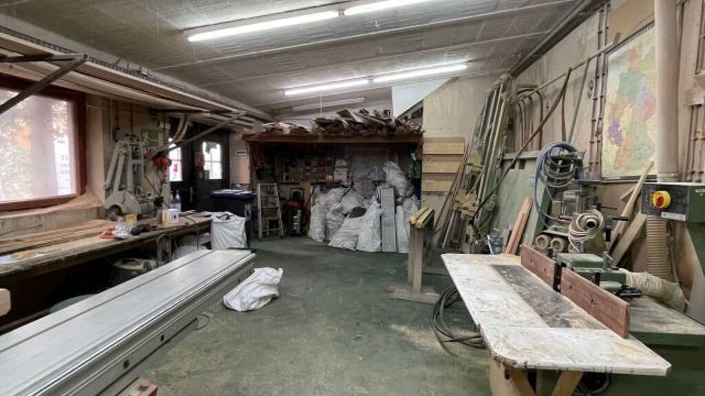 Im hinteren Bereich des Hofs befindet sich derzeit eine Tischlerei.