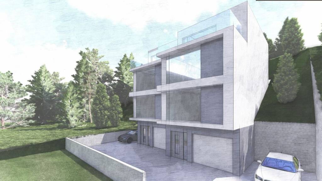Laut einer umfassenden Architektenstudie ist durch Parzellierung des Grundstücks die Bebauung von 2 Doppelhäusern möglich. Ein Bauteil an der Straßenfront; Das zweite Doppelhaus kann auf der hinteren Hanglage errichtet werden. Die erzielbare Wohnnutzfläche beträgt insgesamt 545 m², was ausreichend Raum für großzügige Wohnkonzepte bietet. Darüber hinaus können nach der Bebauung inklusive der Gärten eine gesamte Nutzfläche von 1.727 m² erreicht werden. Dies ermöglicht vielfältige Gestaltungsmöglichkeiten und einen hohen Lebensstandard für die zukünftigen Bewohner.