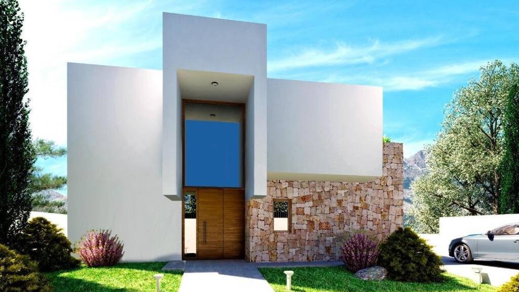 Neubau von 6 Luxus-Villen in Polop mit Blick auf das Meer und die Berge.
