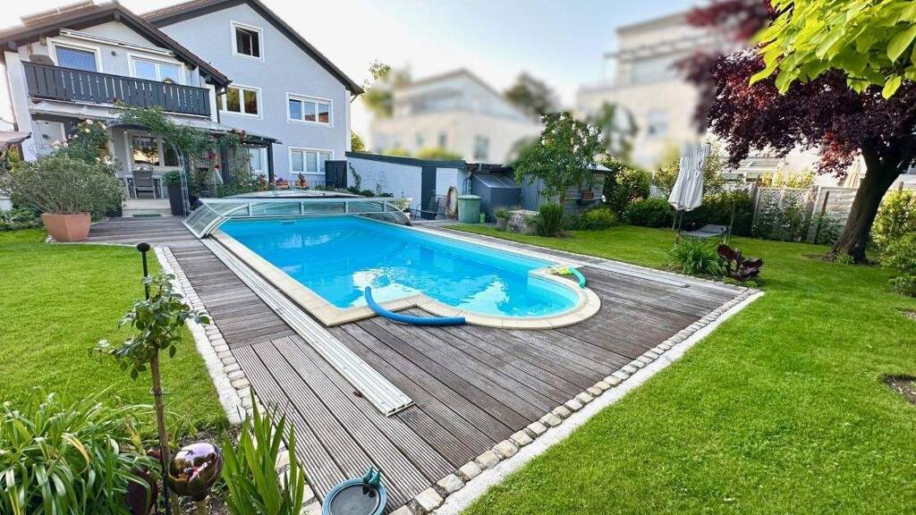 **WOHNIDYLL IN RUHIGER UND DOCH ZENTRALER LAGE!** Exklusives Mehrfamilienhaus mit 5 Wohneinheiten (erweiterbar auf 7 Wohneinheiten)! Dieses lichtdurchflutete Mehrfamilienhaus in ruhiger und doch zentraler Lage ist sowohl ideal zur Eigennutzung, als auch als Kapitalanlage geeignet!! Das Haus hat eine Wohn-/Nutzfläche von rund 442 m² (355 Wohnfläche), 10 Zimmer + 1 Wohnküche + 1 Büro + 1 Ankleide. Das Haus hat derzeit 5 Wohneinheiten, welche auch in 2, 3 oder 4 Wohneinheiten umgebaut bzw. auf 7 Wohneinheiten erweitert werden könnte (die 3 kleinen Wohneinheiten sind vermietet - zwei weitere könnten umgebaut und ebenfalls vermietet werden). Zwei Wohneinheiten haben eine Badewanne, 2 Wohneinheiten ein Duschbad und eine Wohneinheit hat ein Bad mit Badewanne und ein Duschbad. Alle Bäder verfügen über ein Fenster und teilweise über eine Fußbodenheizung. Eine sehr hochwertige Einbauküche ist in jeder Wohneinheit vorhanden. In allen Wohnungen befinden sich hochwertige Parkett- und Fliesenböden. Entspannen Sie auf der idyllischen, sonnigen Süd-Ost-Terrasse inmitten eines herrlich gepflegten Blumenmeeres im sonnigen und sehr großen Garten mit einem erfrischenden Pool mit hochwertiger Überdachung und Solar unterstützter Wassererwärmung. Im Bereich der Hofeinfahrt befindet sich eine Ladestation für Elektrofahrzeuge. Im Keller befinden sich zwei Hobbyräume, ein Waschkeller (in dem sich auch eine Dusche befindet), ein Heizungskeller sowie mehrere Vorratskeller. Die große Doppelgarage hat ein elektrisches Rolltor. Hinter der Garage befindet sich ein sehr geräumiger Lagerraum für Gartengeräte sowie Fahrräder. ca. 2 Gehmin. zur U2 und S6; ca. 6 Min. zur A94; Alle Geschäfte des täglichen Bedarfs befinden sich in unmittelbarer Nähe. Lage: 81825 München-Trudering Kaufpreis € 2.999.000,- + Doppelgarage € 50.000,- (elektrisches Rolltor) + großer Pool mit Überdachung € 50.000,- + Photovoltaikanlage € 25.000,- Kauf: sofort! – Bezug nach Vereinbarung!! Provision: 2,38% vom Kaufpreis inkl. MwSt.