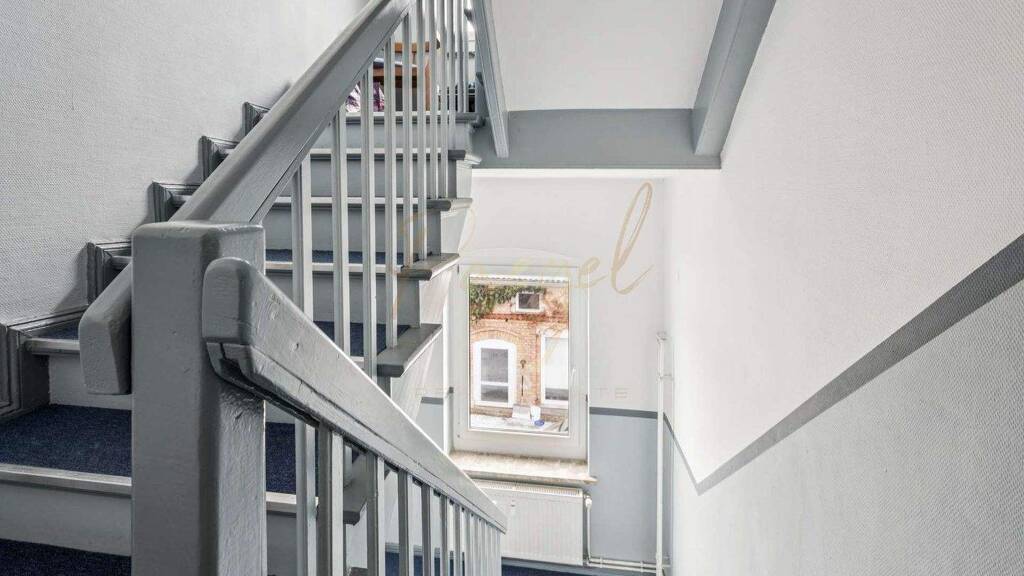 Zum Verkauf steht ein Mehrfamilienensemble auf einem 957 m² großen Grundstück. Das Haupthaus ist zweigeschossig mit ausgebautem Dachgeschoss, voll unterkellert und verfügt über zwei separate Zugänge. Insgesamt befinden sich drei Wohnungen im Haupthaus und eine weitere Wohnung in der freistehenden Remise in zweiter Reihe. Ergänzt wird das Angebot durch eine separate Garage sowie sieben Stellplätze im Hof. Die gesamte Wohnfläche beträgt ca. 338,7 m², davon ca. 279 m² im Haupthaus und ca. 60 m² in der Remise. Zusätzlich stehen umfangreiche Nutz und Verkehrsflächen zur Verfügung, unter anderem Treppenhaus, Keller und Garage, insgesamt ca. 522 m².