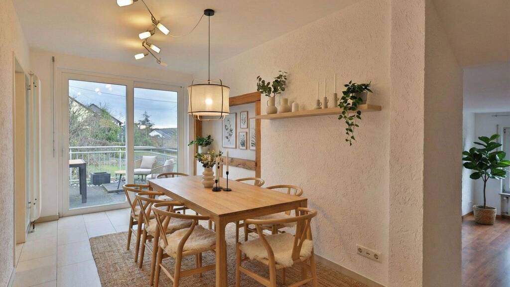 Das Einfamilienhaus bietet mit 6,5 Zimmern und einer großzügigen Wohnfläche von ca. 160 m² auf einem ca. 302 m² großen Grundstück ein ideales Zuhause für Familien oder Paare mit Anspruch auf Raum und Komfort. Das Haus, ursprünglich 1976 erbaut, wurde in den vergangenen zehn Jahren umfassend renoviert sowie modernisiert (u.a. neue Bäder, Heizkörper, Treppen, Elektro) und präsentiert sich in einem sehr gepflegten Zustand. Auf drei Etagen überzeugt die Immobilie durch eine durchdachte Raumaufteilung und lichtdurchflutete Wohnbereiche. Im Erdgeschoss erwartet Sie ein heller und offener Essbereich mit direktem Zugang zur Terrasse, welcher an die moderne Küche angrenzt. Von hier führen nur wenige Stufen hinunter in den gemütlichen Wohnbereich, der durch einen Kamin eine besonders Atmosphäre schafft. Große Fensterfronten sowie der Zugang zum Südbalkon lassen viel Tageslicht herein und verleihen dem Raum eine angenehme Helligkeit. Die offene Gestaltung der Räume erlaubt zugleich eine flexible und individuelle Nutzung der Bereiche. Im Obergeschoss befinden sich drei gut geschnittene Schlafzimmer, die viel Platz für persönliche Gestaltung bieten. Ein großes Tageslichtbad mit Dusche, Badewanne, Waschbecken und WC sowie ein zusätzlicher Balkon runden diese Etage ab. Das Gartengeschoss bietet zwei weitere Schlafzimmer, die sich ideal als Gäste- oder Arbeitszimmer eignen. Beide Zimmer haben einen direkten Zugang zur unteren Terrasse und dem gepflegten Garten, der mit seiner ebenen Fläche zahlreiche Möglichkeiten für Freizeit, Spiel und Entspannung bietet. Ebenfalls auf dieser Ebene befinden sich ein modernes Bad und der Heizraum. Diese Doppelhaushälfte verbindet zeitgemäße Wohnqualität mit einem hohen Maß an Funktionalität und Wohlfühlambiente. Lassen Sie sich von der hochwertigen Ausstattung, den lichtdurchfluteten Räumen und der idyllischen Gartenlage begeistern. Zudem rundet eine geräumige Garage (ca. 35 m²) und ein davorliegender Stellplatz das Angebot ab. Ein Zuhause also, das alle Anforderungen an modernes Wohnen erfüllt!
