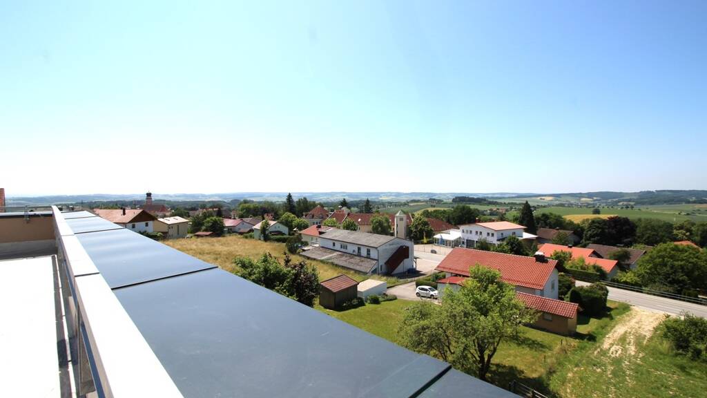 Das Penthouse verfügt über einen großzügigen, ineinander übergehenden Wohn-Ess-Kochbereich, 2 Schlafzimmer, ein Badezimmer, ein Gäste-WC und einen praktischen Hauswirtschaftsraum. Die Dachterrasse und die kleine Frühstücksterrasse sind vom Wohnbereich aus zugänglich. Hier erwartet Sie einen einzigartigen Fernblick bis in die Alpen.