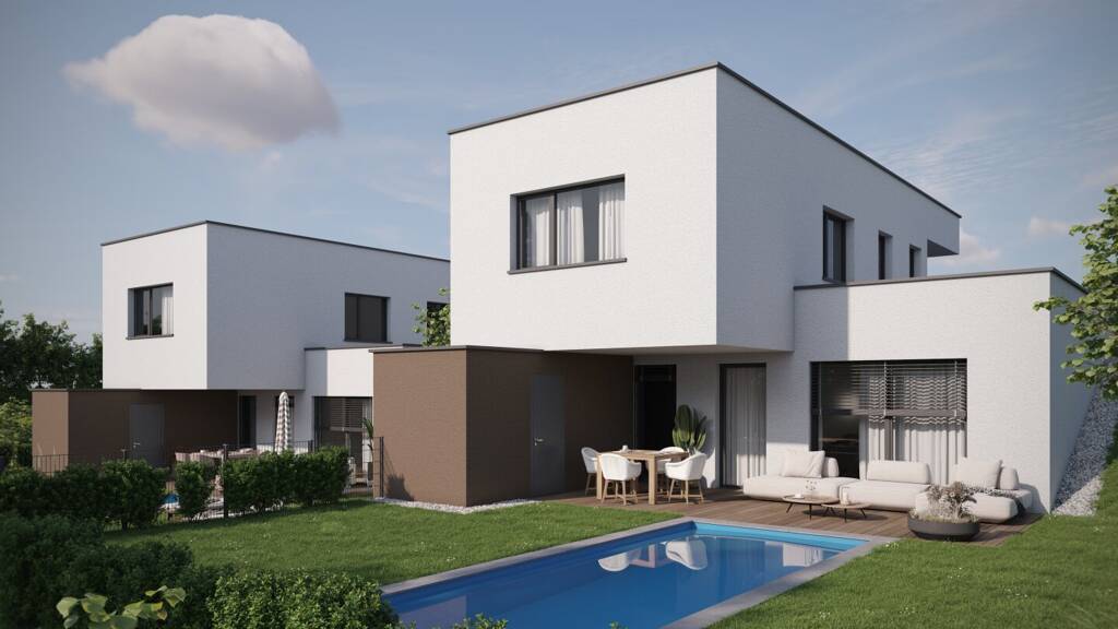 Bereits beim Betreten überzeugt das Haus durch eine klare, moderne Architektur sowie eine durchdachte Raumaufteilung. Großzügige Fensterflächen sorgen für lichtdurchflutete Räume und schaffen eine angenehme Wohnatmosphäre. Der offene Wohn- und Essbereich bildet das Herzstück des Hauses und bietet direkten Zugang zur Terrasse und in den Garten - ideal für Familienleben und gesellige Stunden.