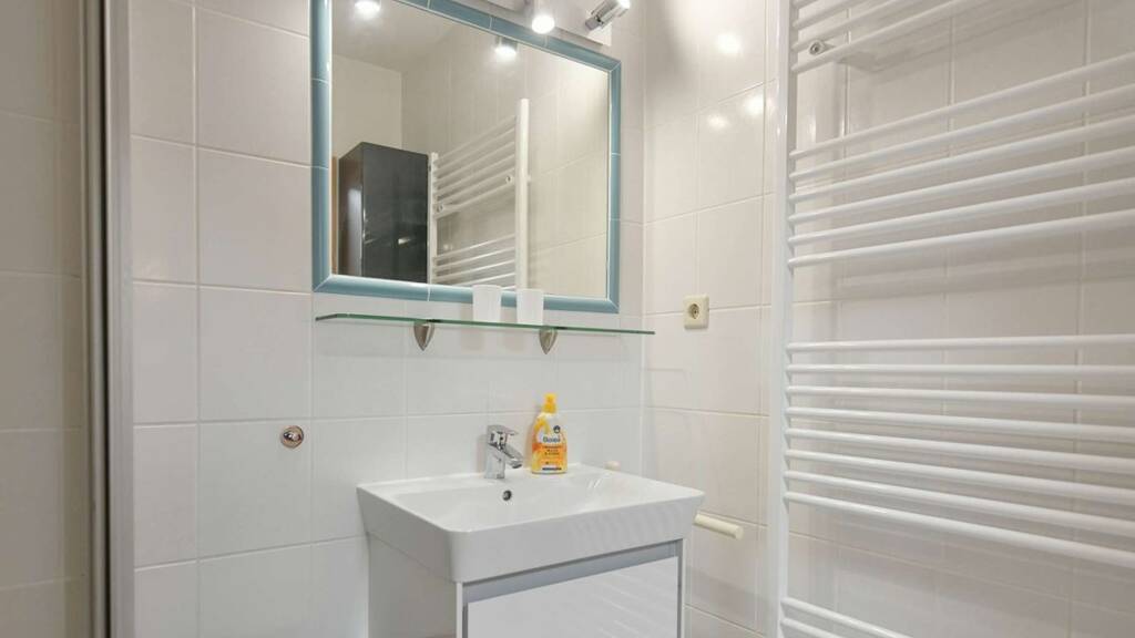 Das separate Schlafzimmer bietet ausreichend Platz für ein komfortables, hochwertiges Boxspringbett sowie einen Maßkleiderschrank mit viel Stauraum. Die geschmackvolle Einrichtung und das durchdachte Design sorgen für eine angenehme Schlafatmosphäre. Das moderne Badezimmer verfügt über eine Dusche, ein Waschbecken mit Spiegel sowie ein WC und ist mit hochwertigen Sanitäranlagen ausgestattet.