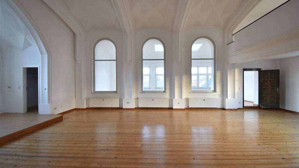 Eine echte Rarität! Bei der angebotenen Immobilie handelt es sich um eine ehemalige Kapelle, welche sich in einem Mehrfamilienhaus befindet. Das Objekt wurde vor einiger Zeit zu einer Wohnung umgebaut und sucht ab sofort einen neuen Mieter. Sie betreten die Wohnung durch die alten Holztüren und stehen mitten in der ehemaligen Kapelle. Dieser Raum fungiert nun also Wohn- und Essbereich und wurde mit einer offenen Küche ausgestattet, welche sich vor Kopf des Raumes befindet. Außerdem finden Sie hier praktischerweise eine Abstellkammer vor. Die Empore, wo sich früher die Orgel befand, eignet sich ideal als Lese- oder Yogaraum. Von hier aus haben Sie den idealen Blick über den gesamten Raum und können die Rundbögen sowie die Deckenhöhe bewundern. Drei große Fenster gewähren Ihnen einen Einblick zu dem angrenzenden Zimmer. Sie können diesen Raum als Schlafzimmer oder als Atelier nutzen. Das Zimmer ist durch die vielen Fenster, inklusive Deckenfenstern, besonders lichtdurchlutet und bietet Ihnen einen herrlichen Ausblick über die Dächer der Nachbarschaft. Das Bad-En-Suite wurde mir einer Wanne und Dusche ausgestattet und verfügt über ein Fenster. Durch ein Durchgangszimmer inkl. Abstellraum, gelangen Sie in das 3. Zimmer, welches als Kinder- oder Schalfzimmer genutzt werden könnte. Ein weiteres Tageslichtbad mit Dusche komplettiert dieses außergewöhnliche Immoblienangebot. Nutzen Sie Ihre Chance und gestalten Sie sich einen ganz besonderes Zuhause!