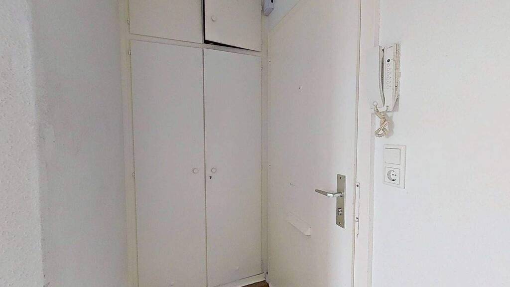 In der Küche erwartet Sie ein weiße Einbauküche mit schicken Holzelementen. Das Badezimmer ist modern gestaltet und mit einer Dusche sowie zeitgemäßen Armaturen ausgestattet. Einbauschränke im Eingangsbereich bieten viel zusätzlichen Stauraum.