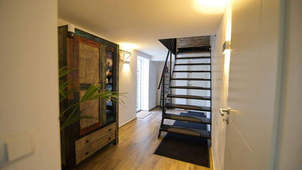 Die Hauptwohnung im Erdgeschoss erstreckt sich bis ins wohnlich ausgebaute Untergeschoss. Auf ca. 135 m² verteilen sich bis zu fünf großzügige Räume.
