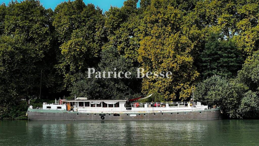 A 200-m² 1952 Freycinet barge to be renovated, converted into an artist's studio, with a terrace on the deck, anchored on the River Rhône in Avignon -