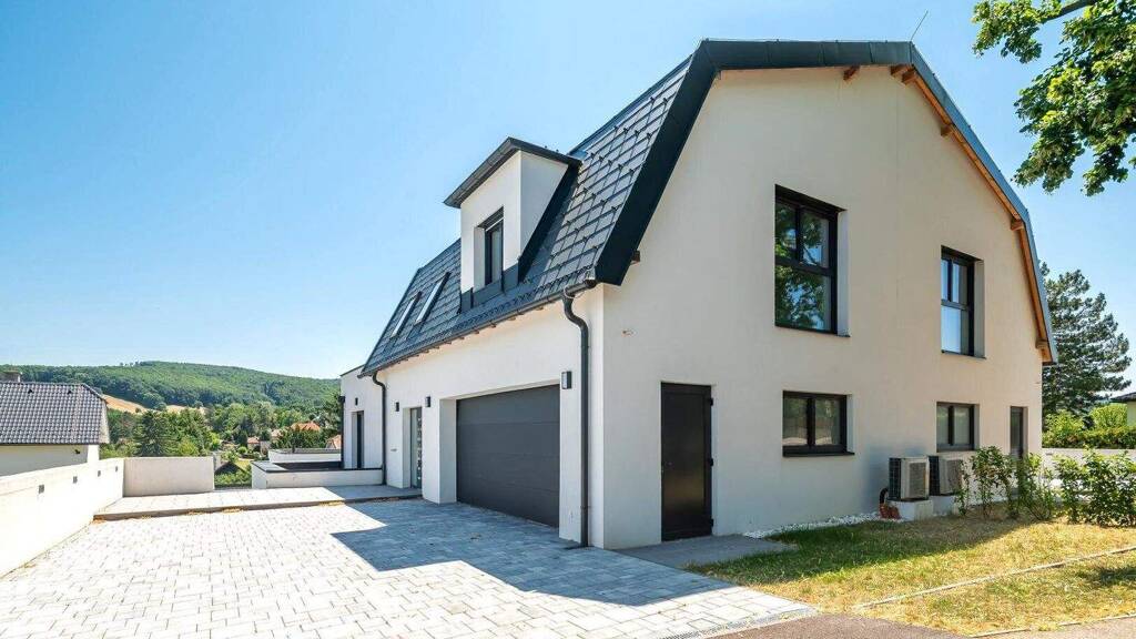 Auf ca. 175 m² Wohnfläche, verteilt auf drei Ebenen und fünf Zimmer (davon 4 Schlafzimmer, oder 3 Schlafzimmer und ein Arbeitsraum), entfaltet sich ein Lebensraum, der nicht nur großzügig, sondern auch stilvoll gestaltet ist. Aktuell wird das Haus belagsfertig übergeben und bietet viele Möglichkeiten individueller Gestaltung. Das 2023-2024 errichtete Haus begeistert mit einem durchdachten Raumkonzept, hochwertigen Materialien und einem eleganten, zeitgemäßen Design sowie einen unverbaubaren Fernblick auf das hügelige Grün des Wienerwalds.