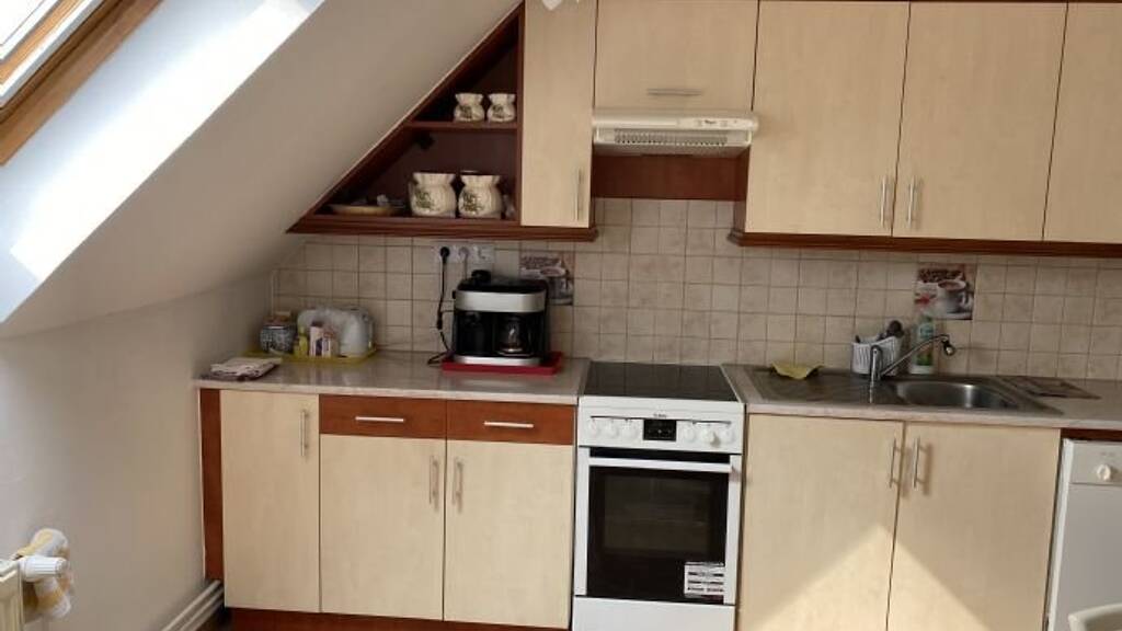 -Die Wohnung im 3. Stock ist 40m2, 2 Zimmer, Küche mit Essbereich, Bad mit WC.
