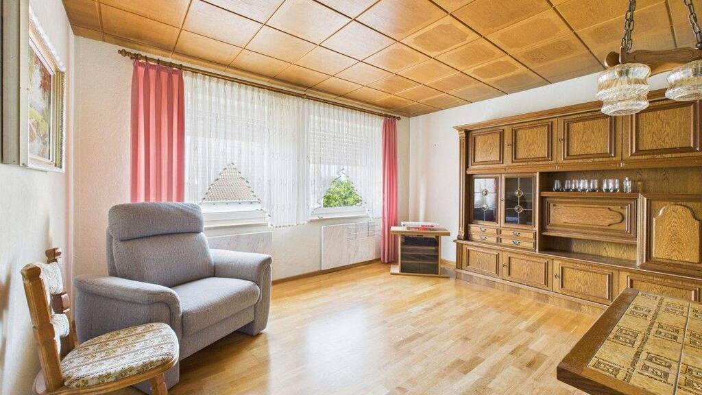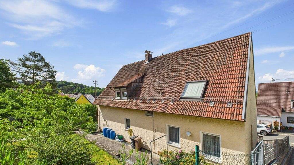 Das Zweifamilienhaus bietet auf ca. 160 m² Wohnfläche viel Potenzial für geschickte Heim- und Handwerker. Im Erdgeschoss befinden sich ein einladendes Wohnzimmer, eine Küche, zwei Schlafzimmer sowie ein Bad mit Fenster, Dusche, WC und Waschtisch. Über ein Schlafzimmer kommt man auf die nach Süd/Ost ausgerichtete Terrasse und in den Garten. Zusätzlich gibt es im EG einen gemeinsamen Bereich mit einem weiteren Tageslichtbad mit Wanne, Waschtisch und WC sowie einem Hauswirtschaftsraum. Das Dachgeschoss umfasst ein großzügiges Wohnzimmer, zwei Schlafzimmer, eine Küche sowie ein helles Bad mit Dusche, Wanne, WC und Waschtisch. Ein Schlafzimmer bietet Ausgang auf den, ebenfalls nach Süd/Ost ausgerichteten, Balkon. Das Dachgeschoss ist bereits seit vielen Jahren vermietet. Der große Garten besticht durch Beete, einen Schuppen und hat viel Platz für Gartenliebhaber und Kinder. Der Anbau sowie die zweite Garage wurden nachträglich im Jahr 1984 gebaut. Im Haus sind einige Renovierungsarbeiten erforderlich. Aufgrund des Alters muss die Heizungsanlage erneuert werden.