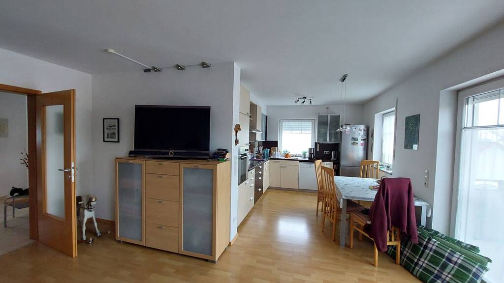 Die Immobilie befindet sich in einem gewachsenen Wohngebiet Nähe der B 300. Bushaltestelle sowie Bäckerei sind in der Nähe. Ausstattung: Laminatböden im Wohn- und Schlafbereich. Bodenfliesen in Bad und Diele. Badausstattung: 2 Waschbecken, 1 WC, 1 Badewanne, 1 Dusche. Anschluss für WM und Trockner vorh. Die vorhandene Küche kann vom Vormieter abgelöst werden.