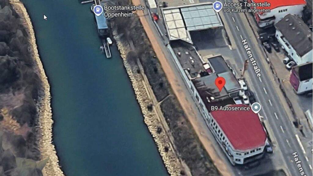 Die Tankstelle mit Autowerkstatt und Nebengebäuden und einer Wohnung liegen verkehrsgünstig an der sehr stark befahrenen B9 in Oppenheim am Ortsausgang Richtung Nierstein.
