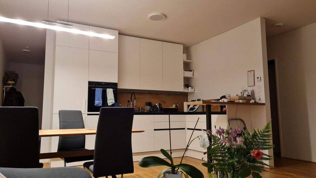 Perfekt geeignet für ein Pärchen oder eine junge Familie. Angeboten wird eine Wohnung mit super Raumaufteilung, einem 19 m² großem Balkon, einer Tischlerküche und zwei Tiefgaragenparkplätzen.