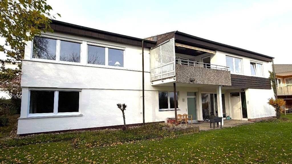 Die Hauptwohnung umfasst vier Zimmer, ein modernes Badezimmer, ein Gäste-WC und eine einladende Ess-Diele. Die gut ausgestattete Küche ergänzt das Platzangebot mit einer praktischen Speisekammer. Der großzügige Sonnenbalkon lädt zum Entspannen ein, während ein Hausarbeitszimmer das Raumangebot abrundet. Bitte beachten Sie, dass die Hauptwohnung derzeit vermietet ist, jedoch nach Absprache bezugsfrei wird.