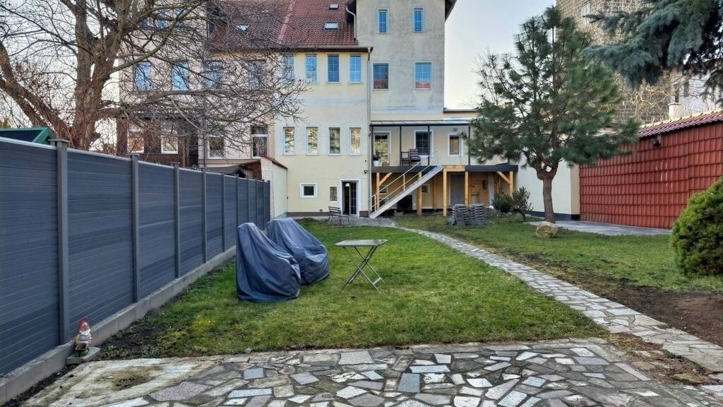 Ein weiterer Vorteil ist der separat abgegrenzte Gartenbereich mit Abstellmöglichkeiten, der den Bewohnern zur Verfügung steht. Zusätzlich gehört ein Stellplatz auf dem abgeschlossenen Grundstück zur Wohnung.