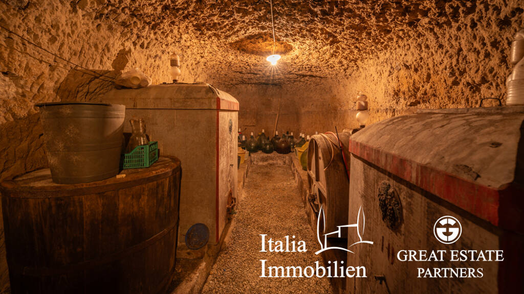 Das Haupthaus mit einer Fläche von 412 m² ist auf drei Ebenen verteilt. Im Untergeschoss befinden sich nicht fertiggestellte Lagerräume und ein in Tuffstein gehauener Keller. Im Erdgeschoss gibt es eine Wohnung mit Küche, Esszimmer, Wohnzimmer, drei Schlafzimmern, einem Badezimmer und einem Abstellraum mit separatem Zugang von außen. Im ersten Stock befindet sich eine weitere Wohnung mit Küche, Wohnzimmer, Speisekammer, zwei Schlafzimmern, einem Badezimmer und Zugang zum Dachboden.