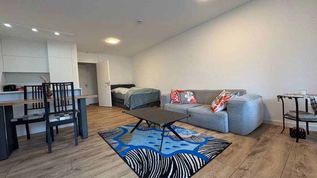 Diese attraktive 1-Zimmer Wohnung mit ca. 47 m² Wohnfläche befindet sich im 2. Obergeschoss eines gepflegten Mehrfamilienhauses in Leinfelden-Echterdingen. Die Wohnung verfügt über eine gehobene Innenausstattung und einen Balkon, der zum Entspannen einlädt. Eine Garage ist ebenfalls vorhanden und bietet zusätzlichen Komfort. Die Wohnung ist barrierefrei zugänglich und wird ab dem 06.10.2025 verfügbar sein. Haustiere sind nach Absprache erlaubt. Frisch renovierte 1-Zimmer-Wohnung mit ca. 47 m² Wohnfläche (Sanierung 2025) • Großzügige, sonnige Terrasse mit Markise – ideal zur Wohnraumerweiterung • Lichtdurchfluteter, offen gestalteter Wohn-/Schlafbereich • Hochwertige Einbauküche mit Kücheninsel und Elektrogeräten • Modernes Duschbad • Neue Bodenbeläge und neuer Elektroverteiler • Kleiner Flur mit praktischem Einbauschrank/Abstellraum • Eigener Stellplatz (im Kaufpreis enthalten) • Kellerabteil • Waschmaschinenstellplatz in der gemeinschaftlichen Waschküche • Öl-Zentralheizung Gemeinschaftseinrichtungen im Wohnhaus: • Aufzug • Waschküche • Fahrradraum • Hauseigene Sauna mit Münzbetrieb Sonstiges: • Gepflegtes Mehrfamilienhaus (Baujahr 1973) mit insgesamt 14 Wohneinheiten • Ruhige, gut angebundene Wohnlage Internet und Strom sind im Warmmietpreis enthalten. Leinfelden-Echterdingen bietet eine gute Infrastruktur mit zahlreichen Einkaufsmöglichkeiten, Ärzten und öffentlichen Verkehrsmitteln. Die Anbindung an das Stuttgarter Umland sowie die Stadt Stuttgart ist hervorragend. Diverse Freizeitmöglichkeiten wie Parks und Sportanlagen sind in der Nähe und tragen zu einer hohen Lebensqualität bei.