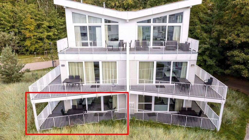 den feinsandigen Ostseestrand um die Ecke (2 Gehminuten) vermietungssichere Lage Erdgeschoss mit großem Balkon voll möblierte und ausgestattete Wohnung flexible Eigennutzung zwei Schlafzimmer mit Doppelbetten Duschbad mit Doppeldusche und Dampfsauna Pkw-Stellplatz international tätiger Betreiber Landal Aktivitätencenter bunte Vielfalt an Gastronomie