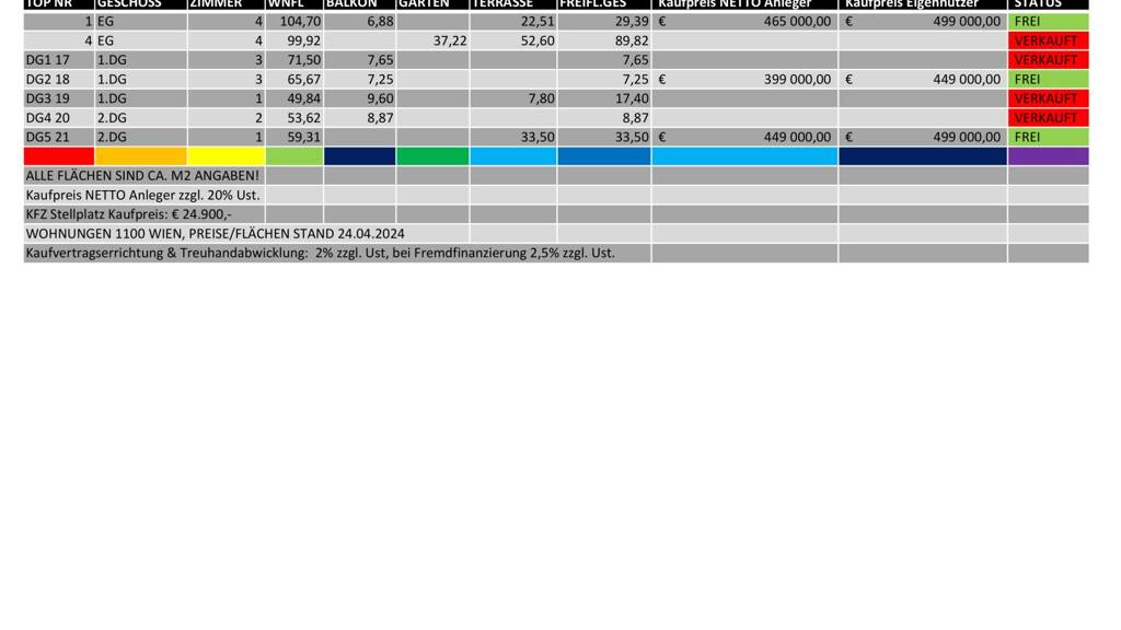 * 5 Neubauwohnungen im Dachgeschoß mit Balkon / Dachterrasse * 1 Altbaumaisonette Top 1 mit Balkon und Terrasse * 1 "Town House" Top 4 mit Terrassen und Garten - im Innenhof des Gebäudes * Wohnflächen zwischen 49 und 104 m² * Alle Wohnungen mit mindestens einer Außenfläche