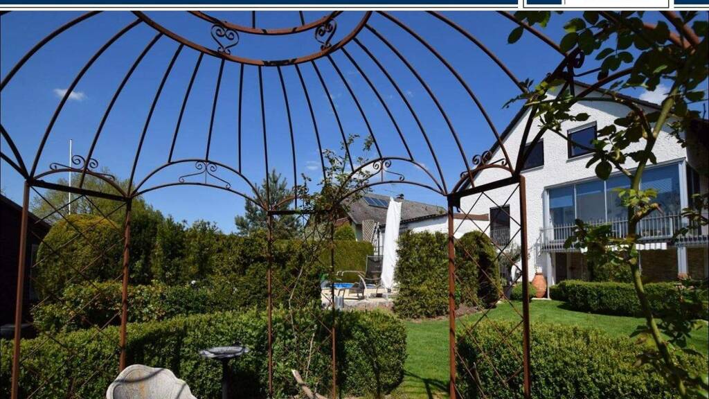 Das freistehende Einfamilienhaus zeichnet sich durch eine solide Bauweise, eine gehobene Innenausstattung und besondere Außenanlagen aus. Das Wohnhaus wurde 1975 in Massivbauweise auf einem ca. 1.344 m² großen, sonnigen Grundstück mit Doppelgarage errichtet und bietet eine Wohnfläche von insgesamt ca. 265 m². Beheizt wird das Wohngebäude mit einer 2010 installierten Gaszentralheizung. Der Kachelofen im Wohnzimmer verbreitet in den Wintermonaten angenehme Wärme und gemütliche Atmosphäre. Ein aktueller Energieausweis liegt vor. Der Bauherr hat auf solide Bauweise geachtet, hochwertige Materialien eingesetzt und das Anwesen über die Jahre stetig modernisiert. Die Architektur des Hauses ist klassisch und zeitlos. Der große Wellnessbereich im Untergeschoss lädt zum Entspannen ein und bietet Ihnen u. a. einen Innenpool mit Gegenstromanlage, eine Infrarotkabine und eine Dusche. Weiterhin im Unterschoss neben dem Technikraum zwei Lagerräume, ein Partyraum, eine Küche, ein weiteres Duschbad, ein Schlafzimmer, eine Waschküche und ein Wintergarten mit Ausgang in den Garten.