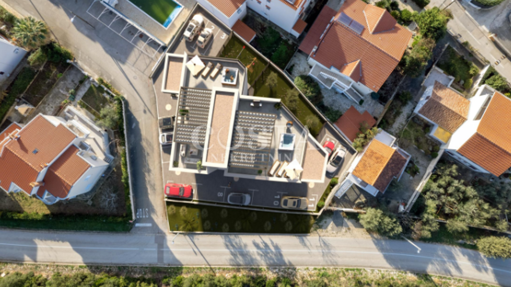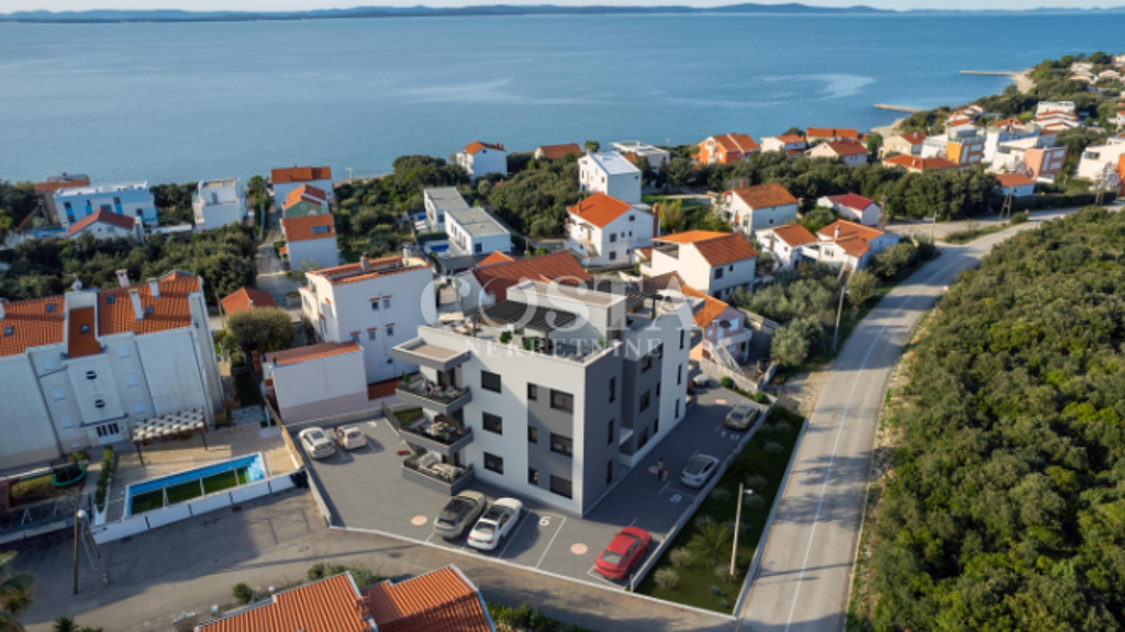 Zum Verkauf steht eine geräumige Wohnung mit Garten, die sich derzeit im Bau befindet, gelegen im ruhigen Ort Petrcane bei Zadar. Die Wohnung verfügt über eine gesamte Wohnfläche von 67,33 m² und besteht aus zwei Schlafzimmern, einem Wohnzimmer, einer Küche mit Essbereich, einem WC, einem Badezimmer, einem Flur und einer Terrasse von 10,02 m².