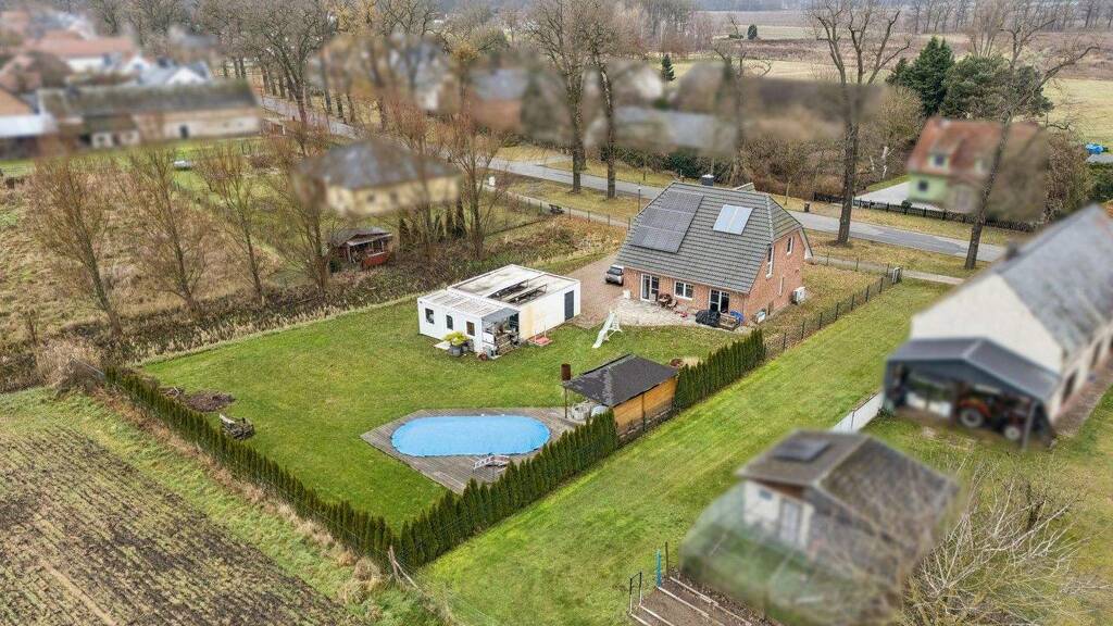 Der Außenbereich ist ein besonderes Highlight: Ein in den Boden eingelassener, beheizbarer Pool (8×4 m) mit Gegenstromanlage lädt zum Entspannen ein. Zur ansprechenden und dank Brunnenanschluss und automatischer Bewässerung pflegeleichten Gartenanlage gehören außerdem eine Werkstatt, ein Gartenhaus und eine Feuerstelle. Durch die idyllische Lage, ergänzt durch ein kleines Fließ, das am Grundstück entlang verläuft, genießen Sie einen wunderschönen, weiten Blick.