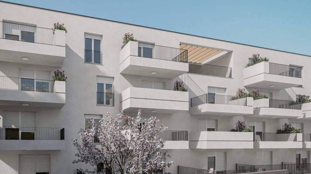Die Wohnung S4 befindet sich im Erdgeschoss eines im Bau befindlichen Wohnhauses.