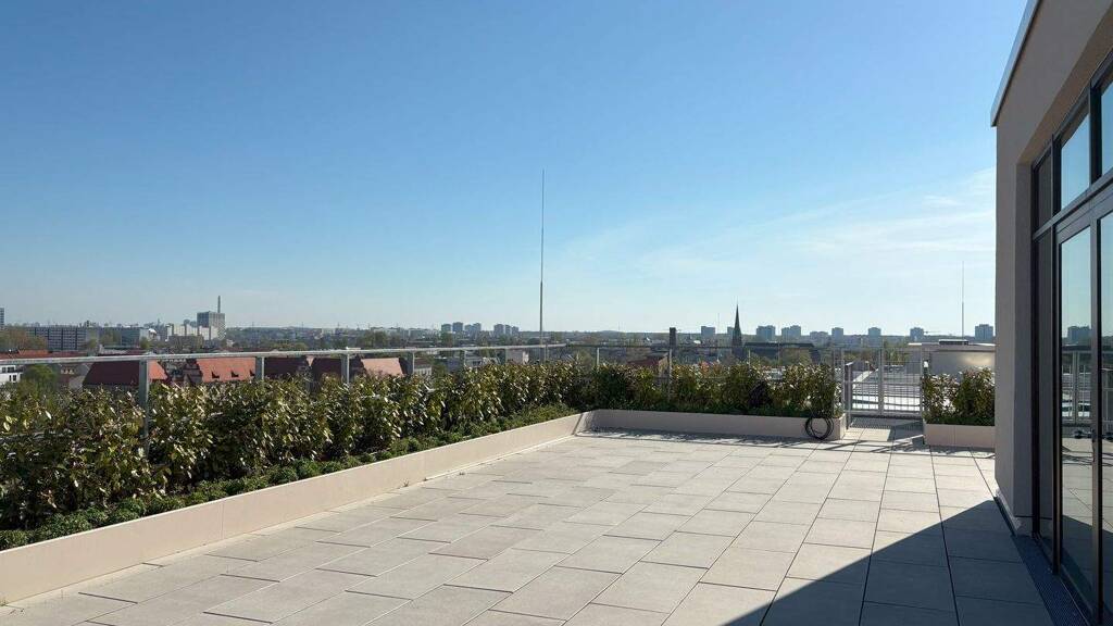 5. OG: Eine Anmietung ist nur etagenweise möglich. Jede der genannten Büroflächen verfügt zusätzlich über eine Terrasse oder Balkonflächen, die zu 50% mit angerechnet werden. Weiterhin gibt es im Zwischengeschoss zusätzlich die Möglichkeit, Lagerflächen anzumieten.