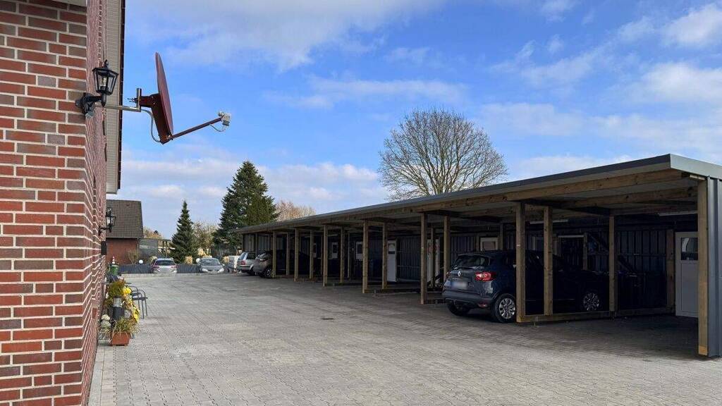 Im Außenbereich steht ein Carport zur Verfügung. Direkt angrenzend befindet sich ein eigener Schuppen, der zur Unterbringung von Fahrrädern und Mülltonnen geeignet ist.