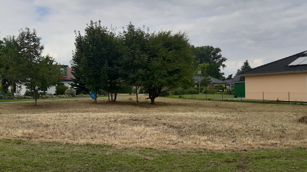 Ein Bauantrag für einen Bungalow (für Urlaubszwecke) war bereits genehmigt, wurde aber aus persönlichen Gründen nicht umgesetzt. Die Fotos stammen aus dem Jahr 2021, als das Grundstück frisch gerodet wurde – seither wurde es nicht weiter gepflegt. Nachträglich wurden noch die Bäume entfernt.