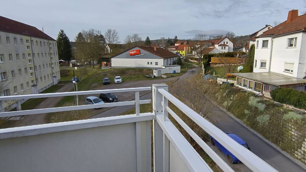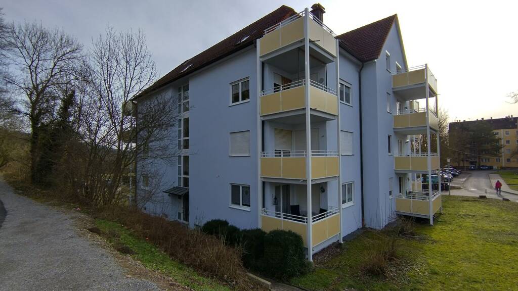 1-Zimmer-Wohnung, 47 qm mit 6 qm großem Balkon sowie einem Stellplatz. Der nächste Supermarkt ist zirka 100 Meter entfernt, die Bushaltestelle zirka 350 m. Zur Wohnung gehört ein größerer nicht ausgebauter Spitzboden.