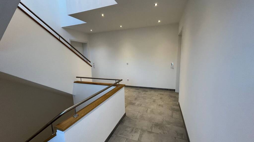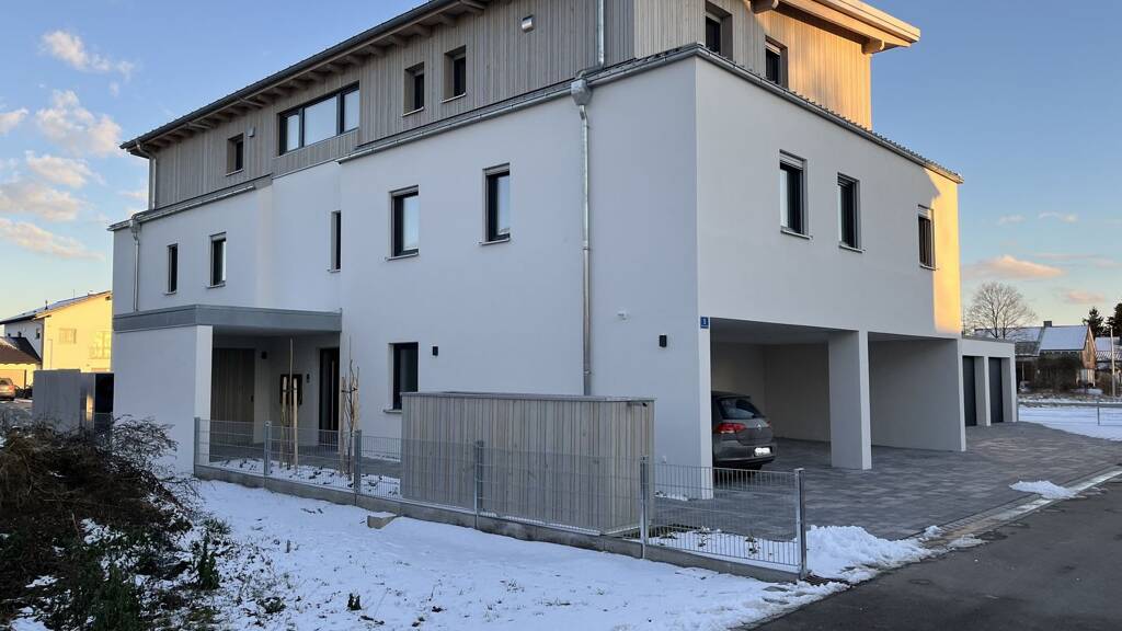 Bei dieser ansprechenden Immobilie handelt es sich um einen Neubau mit vier charmanten Mietwohnungen in Massivbauweise. Die Wohnung im 1. OG, die durch einen gehobenen Standard besticht, kann ab dem 1.2.2026 bezogen werden. Neben zwei Schlafzimmern, Bad, Wohnzimmer und Küche mit großem Essbereich zählen zu der Wohnung ein separates Gäste-WC, ein Abstellraum in der Wohnung und ein geräumiger Flurbereich mit Garderobe. Auf dem sonnigen überdachten Balkon lässt es sich wunderbar vom Alltagsstress erholen.