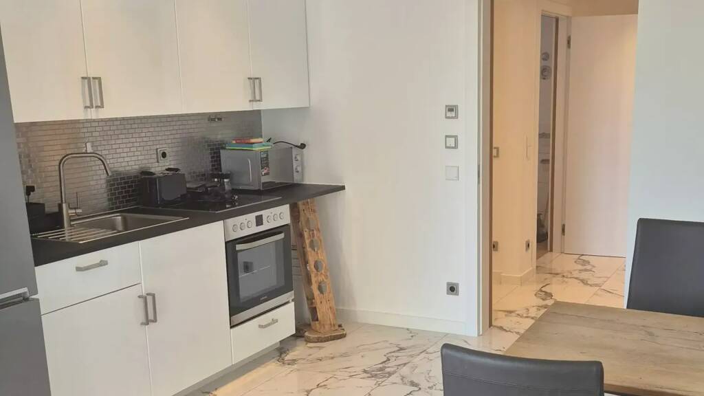 Wohnraum mit integrierter, voll ausgestatteter Küche