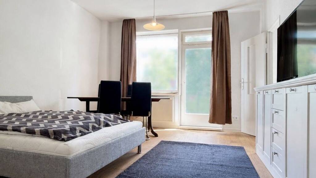 Diese 1-Zimmer-Wohnung mit ca. 35 m² ist ideal für Singles oder Paare, die eine gut geschnittene und komplett ausgestattete Wohnung suchen. Sie wurde 2025 modernisiert, frisch gestrichen und verfügt über einen pflegeleichten PVC-Boden in Holzoptik. Die Wohnung bietet eine separate Küche mit moderner Einbauküche sowie ein neu gefliestes Badezimmer mit Badewanne und Strukturheizkörper. Ein praktischer Abstellraum sorgt für zusätzlichen Stauraum. Der Wohnbereich ist möbliert – mit großem Bett, Kleiderschrank und Smart-TV. Ein sonniger Balkon mit Blick ins Grüne erweitert den Wohnraum ins Freie. Alle Nebenkosten – inklusive Strom, Heizung, Warmwasser und Internet – sind im Mietpreis enthalten. Die Wohnung ist bezugsfertig und bietet ein komfortables Zuhause in zentraler Lage. Die Wohnung befindet sich in Berlin-Wedding, direkt am grünen Schillerpark – ideal zum Spazieren, Sport oder Entspannen. Die Lage verbindet ruhiges Wohnen mit guter Anbindung: Die U-Bahn-Stationen Rehberge (U6) und Franz-Neumann-Platz (U8) sind fußläufig erreichbar und bieten schnellen Anschluss an Mitte, Ku’damm und andere zentrale Lagen. Supermärkte, Cafés, Apotheken und internationale Restaurants befinden sich in direkter Umgebung. Die Nachbarschaft ist lebendig, gut angebunden und dennoch ruhig – perfekt für alle, die zentral und naturnah wohnen möchten. Englisch: This 1-bedroom apartment, measuring approximately 35m², is ideal for singles or couples looking for a well-proportioned and fully equipped apartment. It was modernized in 2025, freshly painted, and features easy-care PVC flooring with a wood look. The apartment offers a separate kitchen with modern fitted kitchen appliances and a newly tiled bathroom with a bathtub and structured radiator. A practical storage room provides additional storage space. The living area is furnished with a large bed, wardrobe, and smart TV. A sunny balcony with a view of the greenery extends the living space outdoors. All utilities – including electricity, heating, hot water, and internet – are included in the rent. The apartment is move-in ready and offers a comfortable home in a central location. The apartment is located in Berlin-Wedding, directly next to the green Schillerpark – ideal for walking, exercising, or relaxing. The location combines quiet living with good connections: The Rehberge (U6) and Franz-Neumann-Platz (U8) subway stations are within walking distance, offering quick access to Mitte, Ku'damm, and other central locations. Supermarkets, cafés, pharmacies, and international restaurants are in the immediate vicinity. The neighborhood is lively, well-connected, yet quiet—perfect for those looking for central living yet close to nature.
