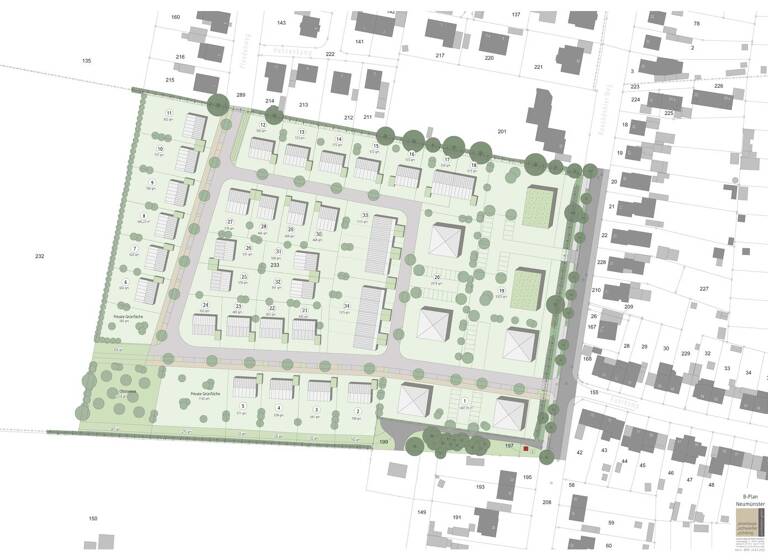 BAUEN UND WOHNEN IN DER NÄHE DES EINFELDER SEES! Sie sind auf der Suche nach einem idealen Grundstück für Ihr neues Zuhause oder eine Investition? Dann haben wir großartige Neuigkeiten! Wir bieten im Stadtteil Einfeld in Neumünster, nahe des Einfelder Sees, 34 erschlossene Baugrundstücke an, die auf Ihre Wünsche abgestimmt sind. Die Grundstücke sind gemäß des B-Plans Nr. 224 „Westlich Roschdohler Weg/Nördlich Kreuzkamp“ der Stadt Neumünster ausgewiesen und bieten vielfältige Möglichkeiten der Bebauung. Ihre Chance auf ein individuelles Zuhause! Verschiedene Größen und flexible Bebauung: Mit Grundstücksflächen zwischen ca. 435 und ca. 5.323 Quadratmetern und einer möglichen Bebauung mit Einfamilien-, Doppel-, Reihen- oder Mehrfamilienhäusern finden Sie hier garantiert das passende Grundstück für Ihre Vorstellungen. Der m²-Preis für Grundstücke mit Einfamilien- oder Doppelhausbebauung liegt bei 240,00 € bis 260,00 €. Die Grundstücke können wie folgt bebaut werden: Nr. 2-11 mit Einfamilienhäusern Nr. 12-18, 21-32 mit Einfamilien- oder Doppelhäusern Nr. 1, 19, 20 mit Mehrfamilienhäusern Nr. 33-34 mit Reihenhäusern Erschlossen und bereit für den Bau: Die Erschließungsarbeiten werden voraussichtlich im Herbst bis Winter 2025 abgeschlossen sein. Danach steht dem Baubeginn nichts mehr im Wege – starten Sie direkt durch! Top Lage in Neumünster: Die Stadt überzeugt durch eine hervorragende Infrastruktur, eine lebendige Gemeinschaft, viel Natur und eine gute Anbindung an umliegende Städte. Hier können Sie Wohnen und Leben in vollen Zügen genießen. Diese Grundstücke bieten eine hervorragende Gelegenheit für Familien, Investoren oder alle, die ein individuelles Zuhause in einer attraktiven Umgebung suchen. Nutzen Sie die Chance, sich Ihren Platz in Einfeld zu sichern! Weitere Informationen finden Sie im Bebauungsplan unter: https://www.neumuenster.de/wirtschaft-bauen/planen/bauleitplanung/bebauungsplaene/rechtskraeftige-bebauungsplaene/plan/westlich-roschdohler-weg-noerdlich-kreuzkamp Wenn Sie sich für eines oder mehrere Grundstücke interessieren, kontaktieren Sie uns gern. Wir stellen Ihnen gern weitere Informationen zur Verfügung! Wir freuen uns auf Ihre Anfrage!