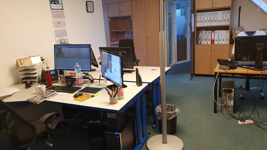 Außerdem gibt es ein Facilityunternehmen und zwei Versicherungsargenturen unter der gleichen Adresse. Mit einem Unternehmen teilt man sich hier den Treppenaufgang, die Küche und die Toiletten.
