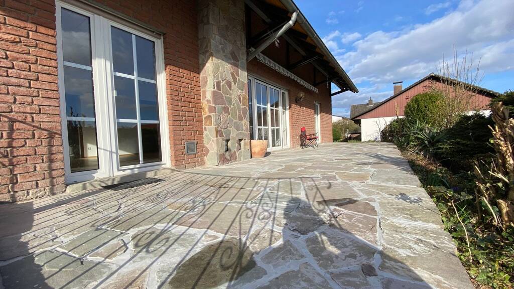 Das freistehende, verklinkerte Haus wurde im Jahre 1983 sehr solide auf 783 Qm Grund errichtetet. Es liegt zentral im Stadtteil Nordshausen – eingebunden und ruhig – in einer kleinen Stichstraße nicht weit von einem bekannten Italienischen Restaurant entfernt. Die Wohnung im Erdgeschoss ist hell, vollumfänglich ausgestattet, geräumig, fast neuwertig und zudem sehr schön ausgeführt. Die ebenerdige Naturstein Terrasse auf der Südseite des Hauses bietet Ihnen ungestörte Erholung (die Loggia der DG Wohnung liegt abgeschirmt in einiger Entfernung nach Westen). Die Terrasse ist beinahe mit der eines freistehenden Einfamilienhauses vergleichbar; sogar mit Abendsonne im vorderen Bereich. Eine große Sonnen Markise steht zur Verwendung bereit. Das Wohn- und Esszimmer bietet gute 40 Quadratmeter Wohnfläche. Der Ofen wurde auf den heutigen Abgasstandard gebracht. Er beinhaltet einen Wärmespeicher und einen Nachheizbereich. Es ist ein Holz Kachelofen mit gemütlicher Wärmeabstrahlung bei einem extrem hohen Wirkungsgrad. Die U- Küche wurde erst vor 3 Jahren neu eingebaut und ist voll ausgestattet. Die 13,6 Quadratmeter Wohnfläche der Küche bieten zudem Platz für eine Sitzgruppe am Fenster. Es stehen in der Wohnung zwei weitere helle Zimmer zur Verfügung (17,5 und 16 Quadratmeter). Ein weiteres Highlight ist das neue Bad (mit Fußboden Heizung) und Gäste WC. Das 4. Zimmer ist ein heller geräumiger universell nutzbarer Raum (z.B. als Home- Office / Hobby Raum / Gäste Zimmer / usw.) außerhalb der EG Wohnung im Souterrain des Hauses (3 Fenster, 18 Quadratmeter, super schnelles Internet). Die hier verbaute Fußbodenheizung ermöglicht einen wohltemperierten angenehmen Aufenthalt (ggf. über den gesamten Arbeitstag im Home Office). Ein Abstellraum (6 QM) befindet sich ebenfalls im Souterrain. Hinzu kommt der gemeinsame Wasch- und Trockenraum in dieser Ebene. Zur Wohnung gehört ein Stellplatz und eine Garage (Miete: 60,- Euro / zukünftig mit elektrischem Garagentor). Die im Haus befindliche vermietete DG Wohnung wird von einer freundlichen Familie bewohnt. Aufgrund der besonderen Wohnaufteilung (3,5 Zi im EG & Büro/ Sonstiges im Souterrain) suchen wir Mieter welche diese Lösung gut nutzen können. Deshalb bitten wir um eine kurze Vorstellung und ebenso um die Nennung der Nutzung im Souterrain, bereits bei der Kontakt Aufnahme. Alle Zimmer sind jetzt mit elektrischen Außen Rollläden ausgestattet. Zudem der Rückbau der Fensternischen im Zusammenspiel mit den 36er Außenwänden haben dazu geführt, dass der Energie Verbrauch erheblich gesunken ist. Deshalb ist der bisherige Energieausweis ohne Aussagekraft (vor 3 Jahren erstellt). In der Diele, dem Wohnzimmer und der Küche liegt hochwertiges Eiche Parkett (abgeschliffen und neu versiegelt). Die restlichen Zimmer sind mit neuem Vinyl Boden ohne schädliche Weichmacher ausgestattet. Es kommt biobasiertes Öl aus der Sojabohne zum Einsatz. Die Heizkörper laufen auf niedriger Vorlauftemperatur und sind gut vom Staub zu befreien (Hygiene Heizkörper der Firma Zehnder). Was Sie auf den Bildern noch nicht sehen können sind die neuen Weißlack Landhaustüren. Von diesen 9 neuen Türen werden 4 mit Glas ausgestattet sein. Zusammenfassung der Eigenschaften: - Reihenhaus Größe hinsichtlich der Wohnfläche - Wohnen auf einer Ebene - Ungestörte Terrassen Nutzung - Ruhiges Arbeiten im Souterrain - neuwertiger Gesamtzustand
