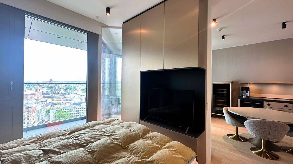 Willkommen im FOUR Frankfurt, dem herausragensten Wohnprojekt im Herzen der Stadt. Hier finden Sie exklusive Mietwohnungen, die modernes Design mit höchstem Wohnkomfort vereinen. Die Architektur des Gebäudes spiegelt die Dynamik und Eleganz Frankfurts wider und bietet ein Zuhause, das keine Wünsche offenlässt. Das FOUR kann als neues, pulsierendes Herz des Bankenviertels bezeichnet werden und stellt eine Verbindung zur Innenstadt her. In unmittelbarer Nähe befindet sich der Goetheplatz, der an den bekannten Roßmarkt grenzt. Über Kopfsteinpflaster gelangt man schließlich in die Goethestraße, eine der meistfrequentierten Luxuseinkaufsstraßen Deutschlands. Hier laden großflächige Schaufenster zum Flanieren ein und präsentieren eine breite Palette internationaler High-End-Marken. Von der Goethestraße aus führt der Weg weiter zur Hauptwache, einem zentralen Knotenpunkt, von dem aus sich die Zeil erstreckt - Frankfurts beliebte Einkaufsstraße. Von hier aus kann man in die historische Altstadt eintauchen, entlang des Museumsufers spazieren oder den Opernplatz besuchen, der für seine kulturelle Bedeutung bekannt ist. Über die Neue Mainzer Straße gelangt man schnell zurück ins Bankenviertel, wo das FOUR seinen Standort hat. Diese zentrale Lage bietet nicht nur exzellente Anbindungen zu den wichtigsten Geschäfts- und Freizeitbereichen, sondern auch eine perfekte Balance zwischen urbanem Leben und kultureller Vielfalt.