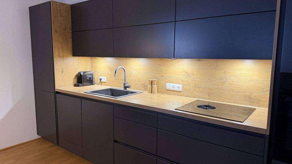 Die hochwertige, DAN-Küche bietet allen Elektrogeräten Platz und besticht mit sehr modernem Design und hoher Funktionalität.