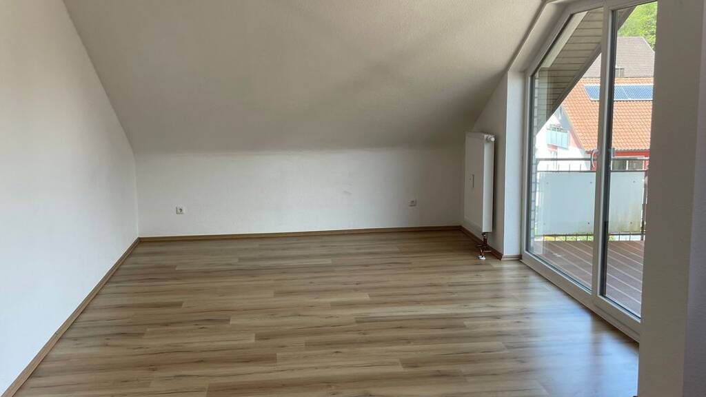 Helle DG-Wohnung (55 m2, 2 Zimmer) mit neuer Küche, Balkon, 2 Stellplätzen, Keller und Garten