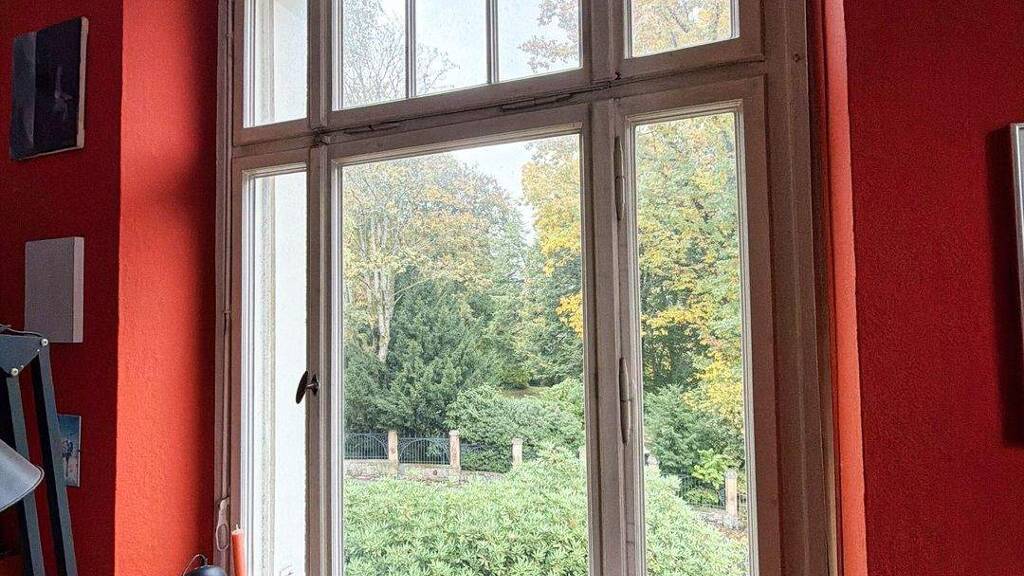 Bereits das repräsentative Treppenhaus vermittelt beim Betreten den besonderen Charakter der Immobilie. Im ersten Obergeschoss befinden sich zwei großzügige Zimmer, eine Küche, ein Büro sowie ein Gäste-WC. Über eine elegante Wendeltreppe gelangt man in die obere Etage, auf der sich zwei Schlafzimmer und ein Badezimmer befinden. Ein sonnig ausgerichteter Balkon bietet einen schönen Blick in den Garten und sorgt für eine helle und angenehme Wohnatmosphäre.