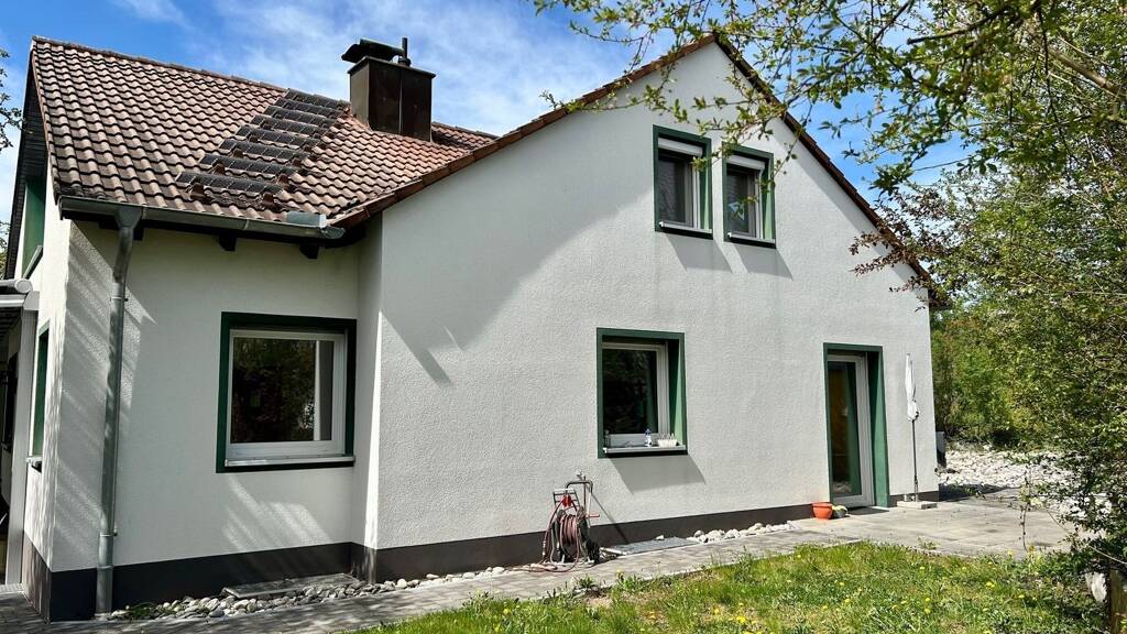 Aufteilung und Nutzung: Zentraler, freundlicher Wohnbereich mit Zugang zur Südterrasse. Die Südterrasse ist mit einer hochwertigen Alu-/Glaskonstruktion teilweise überdacht und kann in den Sommermonaten beschattet werden. Geräumige Wohnküche mit Zugang zur kleinen Frühstücksterrasse. Sechs unterschiedlich große Schlafräume im EG und DG. Zwei Tageslichtbäder und separates Gäste-WC. Großteils wohnraummäßig ausgebaute Kellerräume (z.B. Büro, Hobbyraum).
