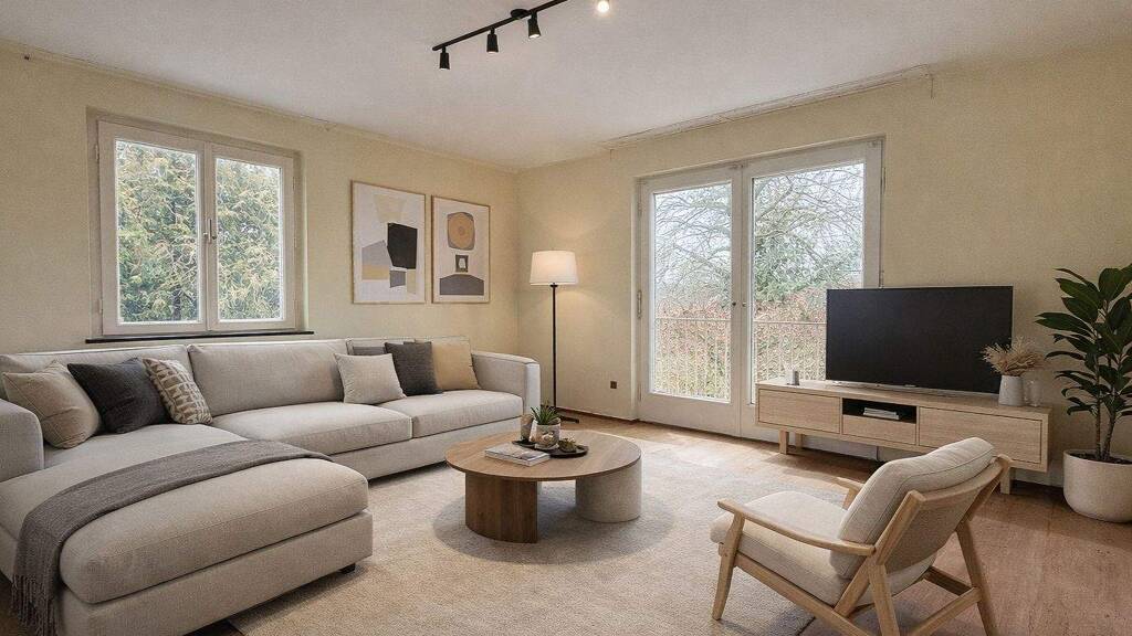 Ein Balkon sowie eine Terrasse erweitern den Wohnraum ins Freie und schaffen zusätzliche Aufenthaltsqualität. Das Haus ist voll unterkellert und bietet praktische Abstell-, Hobby- oder Nutzflächen. Eine Einbauküche ist nicht vorhanden, sodass Ihnen bei der Küchengestaltung alle Möglichkeiten offenstehen.